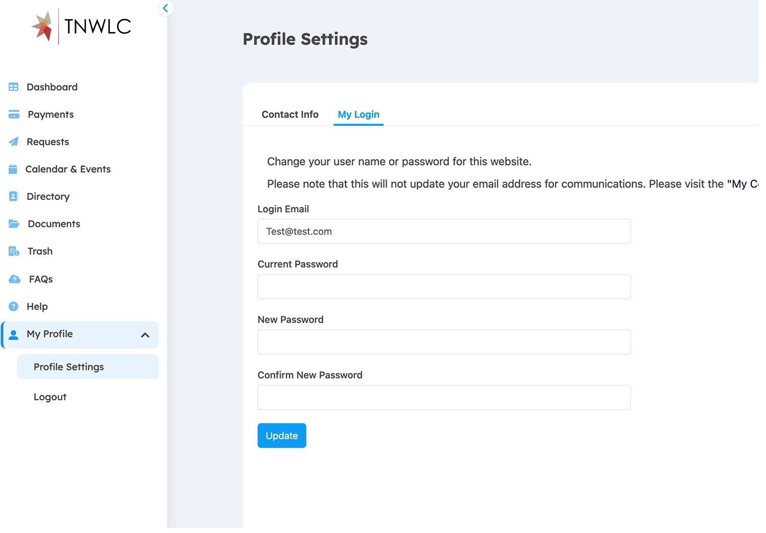By selecting the My Login tab at the top of this page, owners can also update their login information.